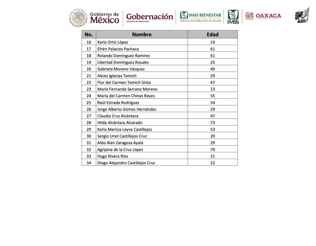 Segob también puso a disposición el número de teléfono 55 2230 2106 para que familiares y conocidos puedan solicitar información adicional sobre los pacientes.