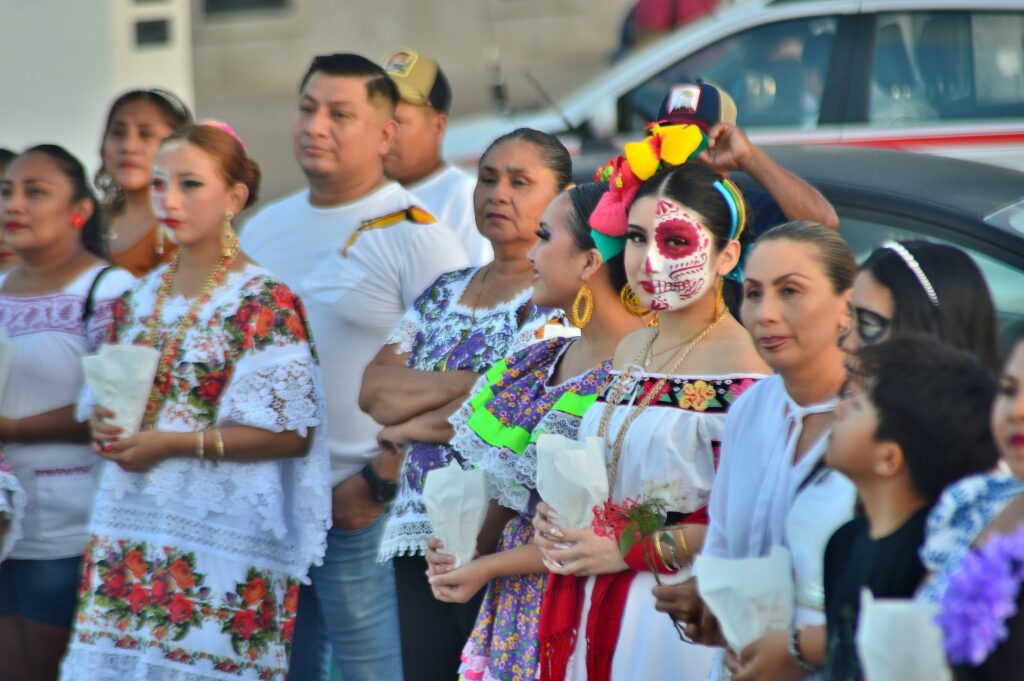 Niños, niñas y jóvenes caracterizados con trajes y maquillaje participaron representando a los fieles difuntos que se despedían del mundo terrenal para volver al inframundo con los últimos rayos del astro rey.