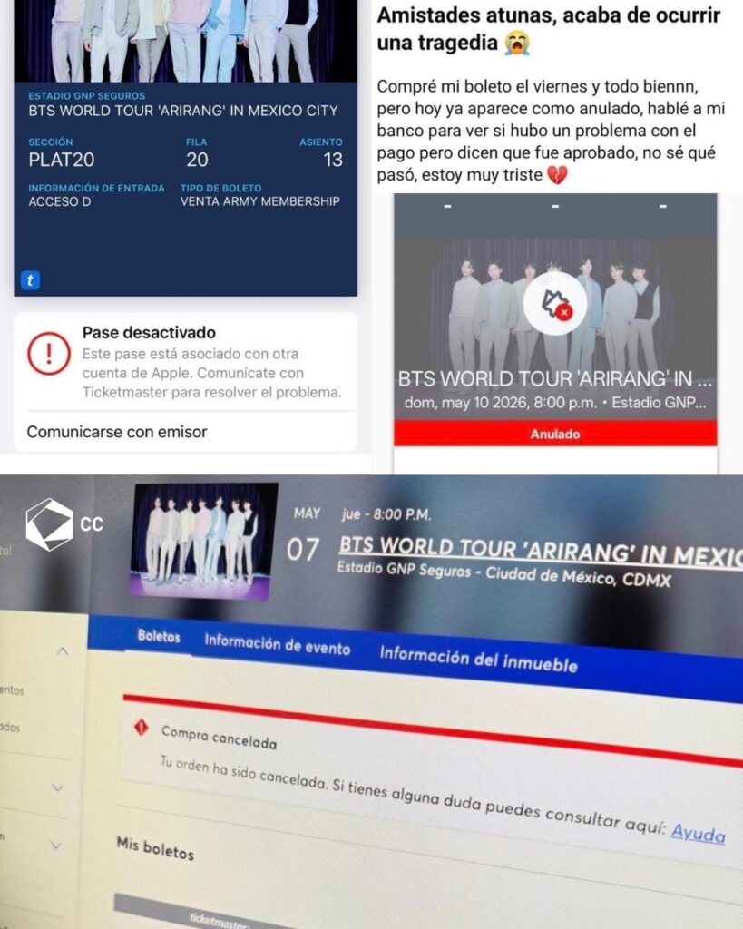Con el paso de las horas, la situación escaló. Decenas de usuarios denunciaron que, aun después de haber recibido correos de confirmación, Ticketmaster canceló sus boletos de BTS, argumentando supuestas violaciones a sus políticas internas.