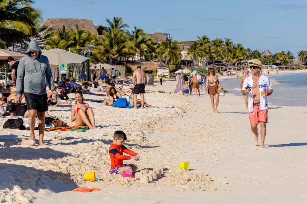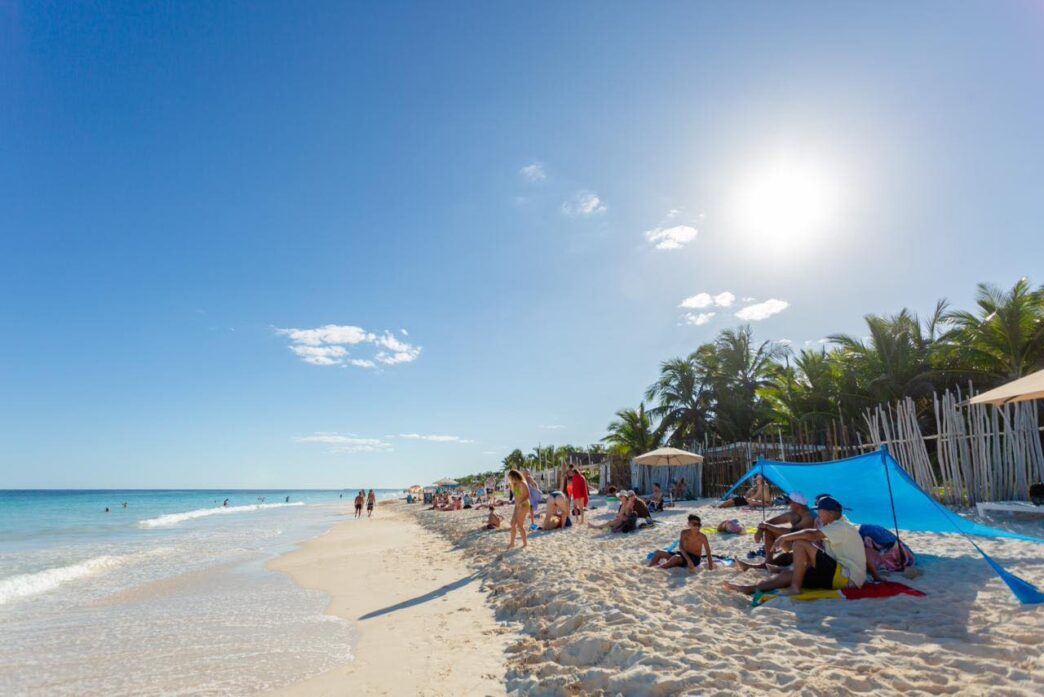 TULUM.- La Playa del Pueblo en Tulum se consolida como un espacio natural saludable, con aguas claras y sin acumulación de sargazo, lo que permite a visitantes disfrutar plenamente de este destino turístico.