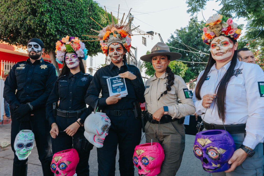 Durante la jornada participó el Escuadrón Catrina de la Policía de Guadalajara, que además de convivir con niñas y niños, promueve una campaña de donación de órganos.